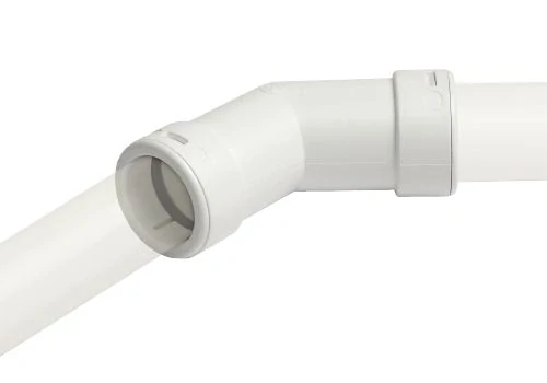 135° koleno pre odtokové potrubie kondenzátu používané na spojenie dvoch potrubí s rohom 135° v klimatizačných zariadeniach. Spojovací systém nevyžaduje žiadne nanášanie lepidla.