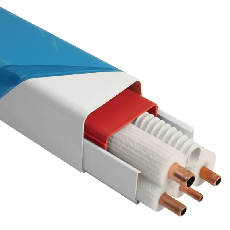 Plastový žľab 1412BCF potiahnutý ochrannou fóliou slúži na uloženie rozvodov (meden potrubie, kondenzačná hadica, elektrický kábel) klimatizácie.